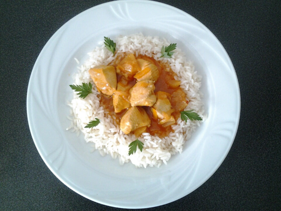 Filet z piersi kurczaka w sosie słodko -pikantnym, ryż
