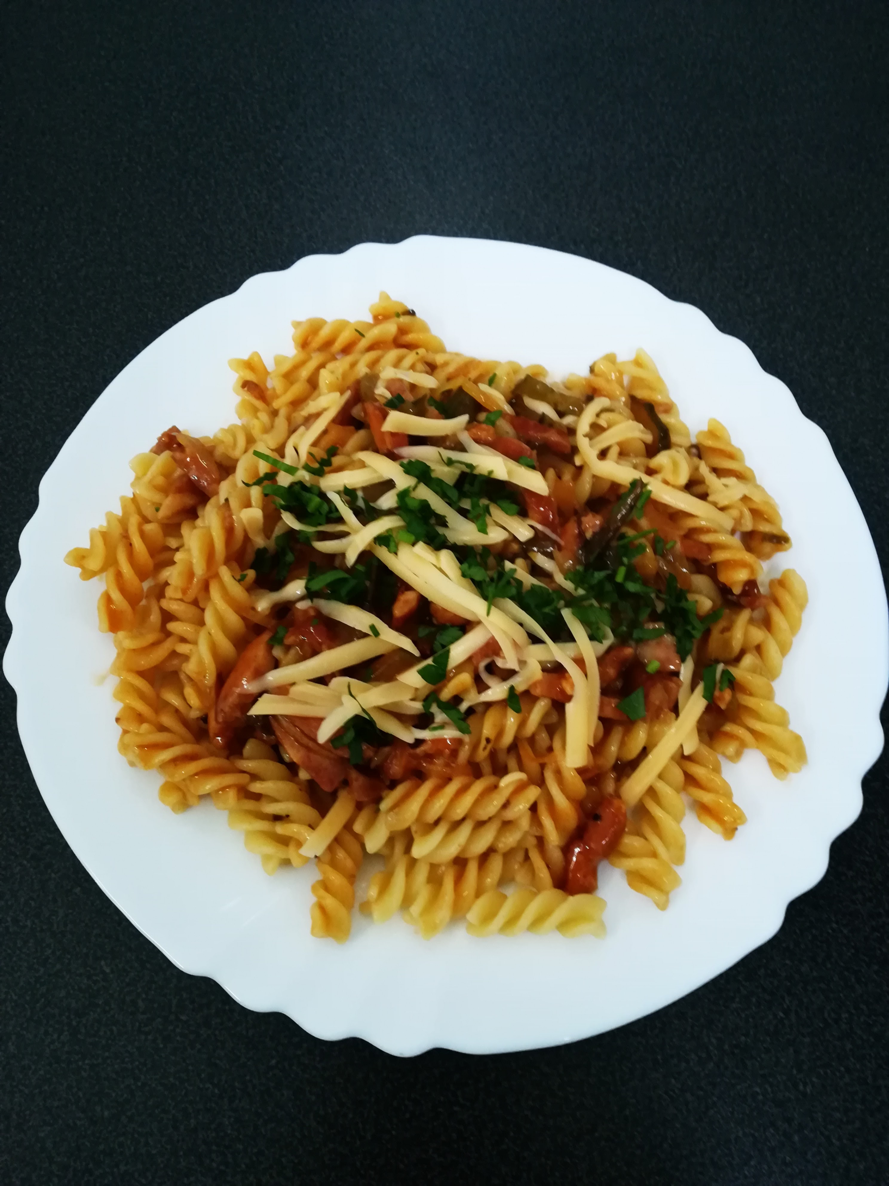 Filet z piersi kurczaka z anansem i serem, ziemniaki, surówka