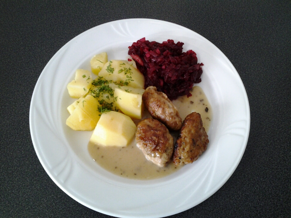 Zraziki wieprzowe w sosie grzybowym,ziemniaki, surówka